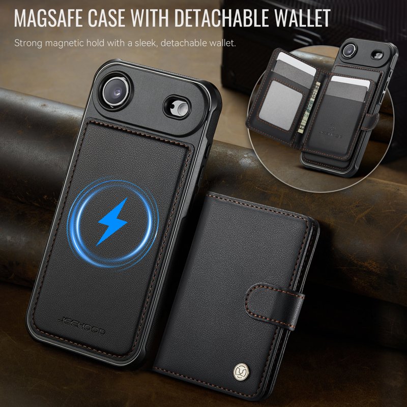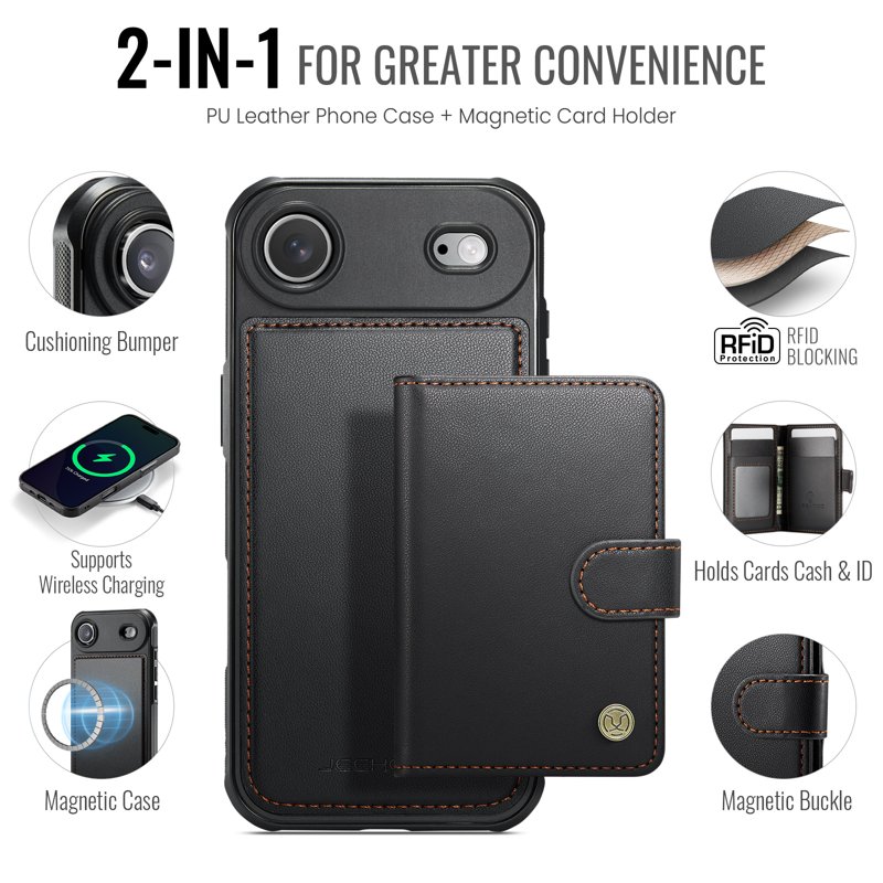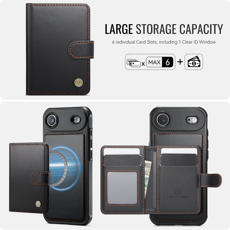 JEEHOOD J09 iPhone Air Skal RFID Skydd Läder MagSafe Svart