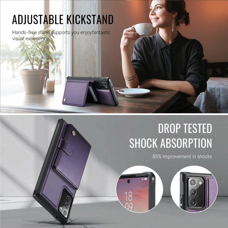 - Säker magnetisk spänne - Sidospännet håller dina kort och kontanter på plats under daglig användning.