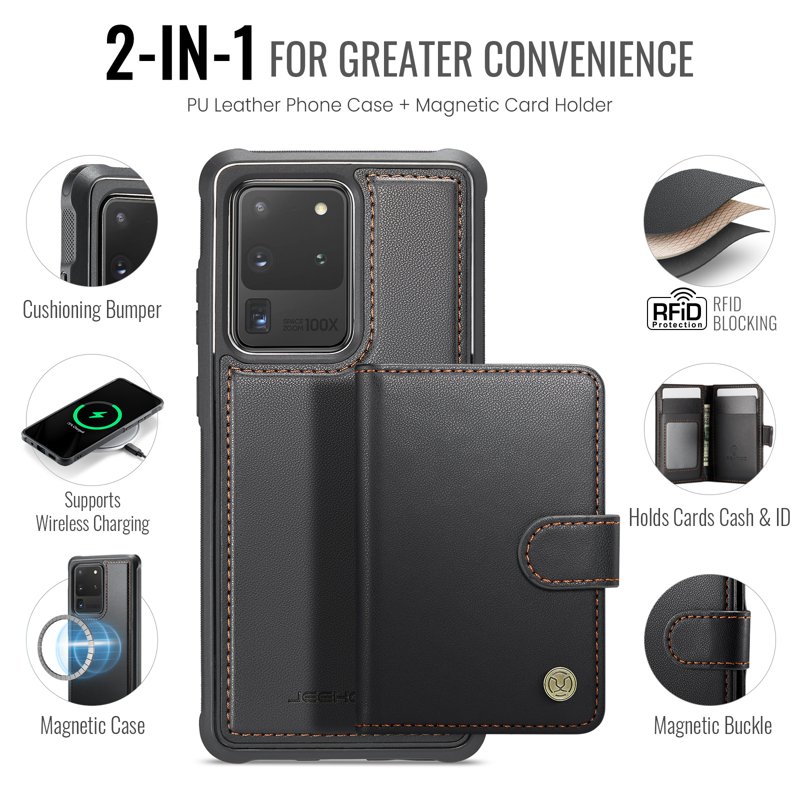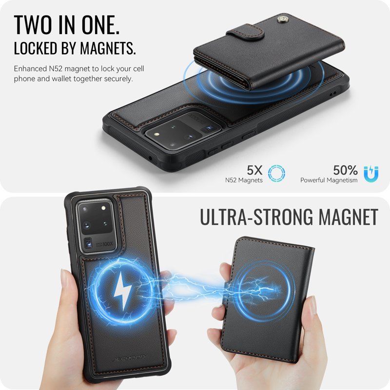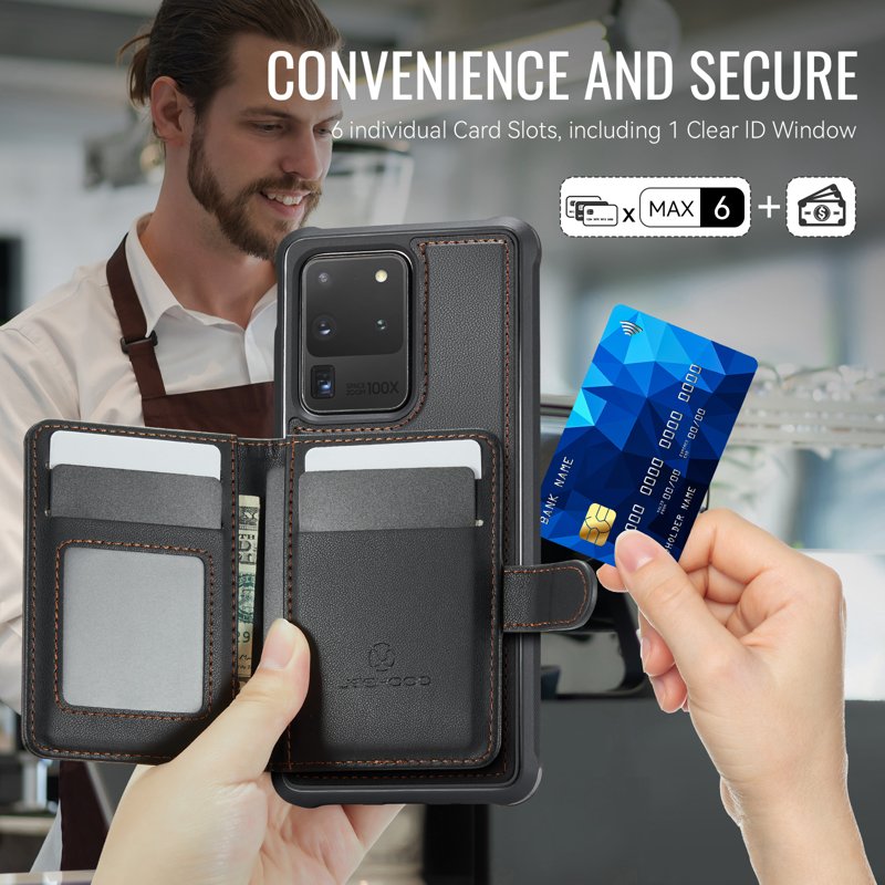 - Avtagbar kortplånbok: Den magnetiska plånboken kan enkelt tas bort från fodralet för flexibel användning, samtidigt som den behåller en säker magnetisk koppling.