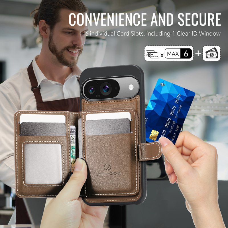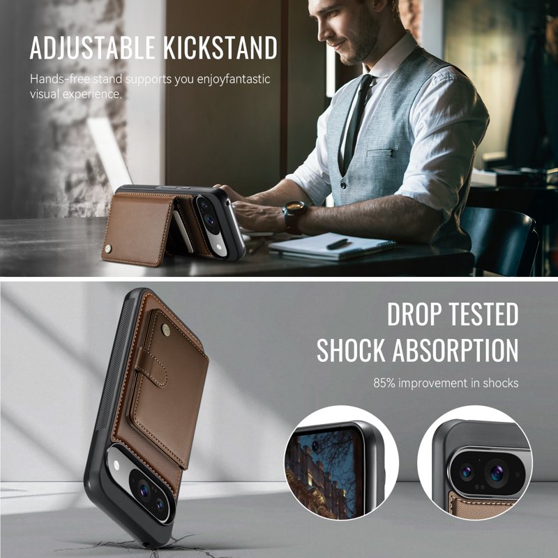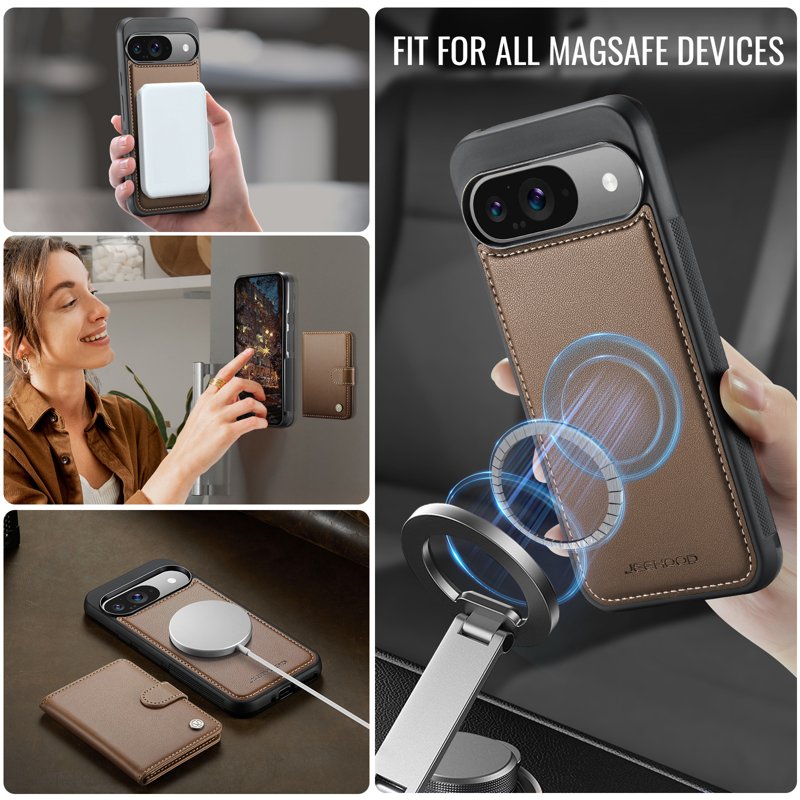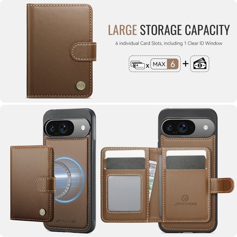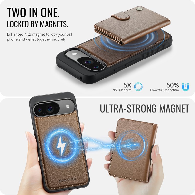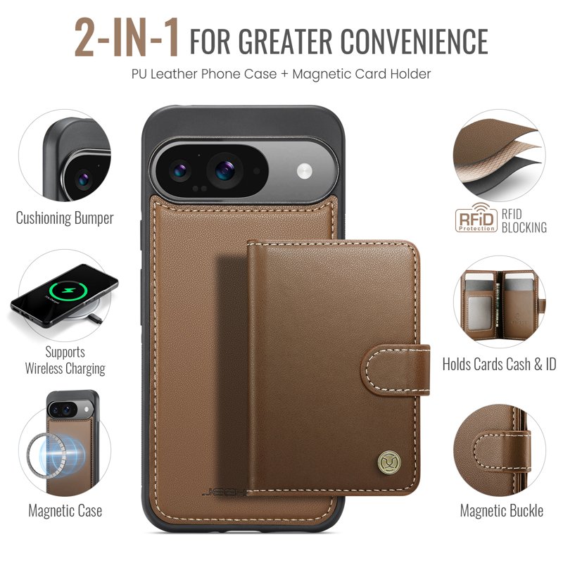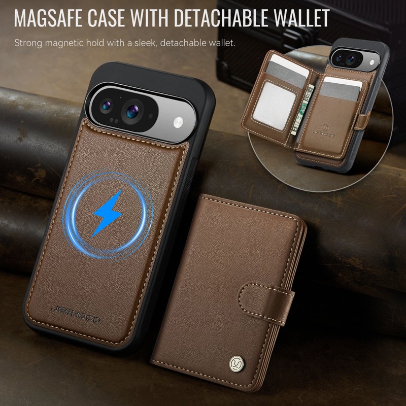 JEEHOOD J09 Skal till Google Pixel 9 Pro RFID Läder Brun