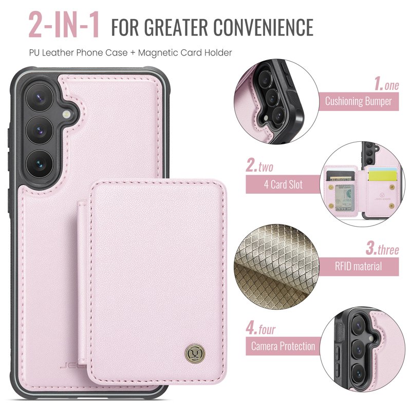 Skydda din Samsung Galaxy S26 Plus med JEEHOOD J05 Leather Mobile Cover. Denna eleganta och funktionella mobilskal erbjuder en 2-i-1 design med avtagbar magnetisk kortväska. Njut av säkerhet och bekvämlighet med RFID-blockering och kickstand-funktion. Perfekt för den moderna användaren som värdesätter både stil och funktionalitet.