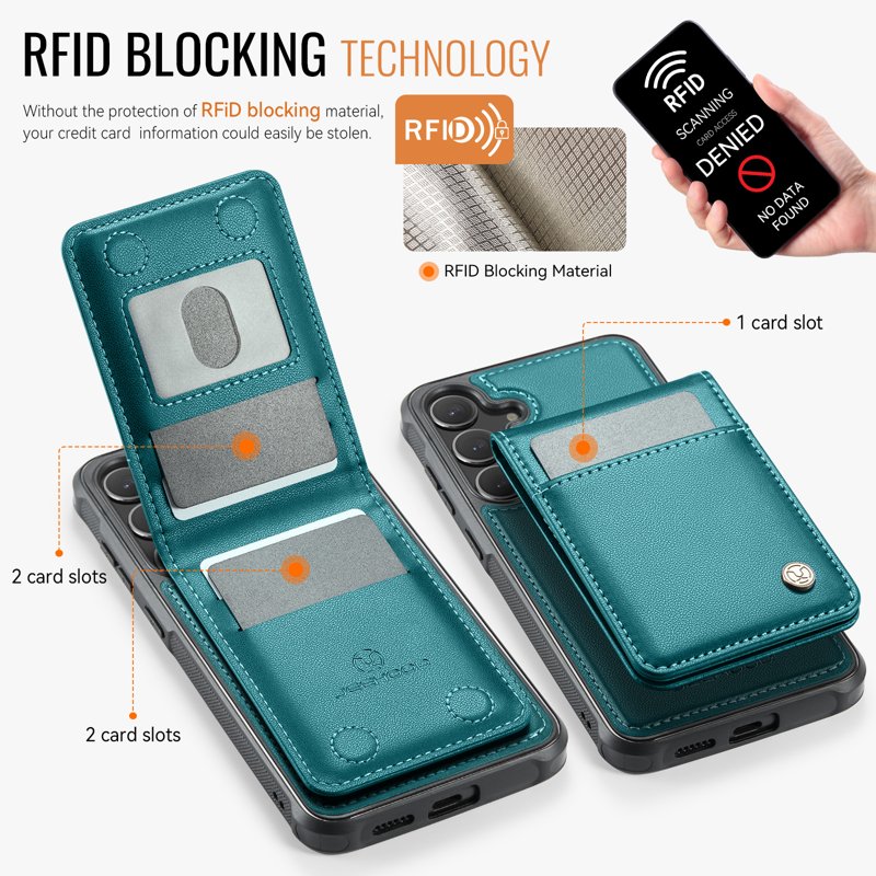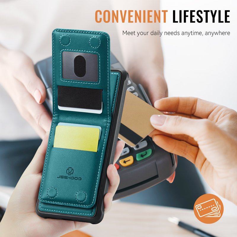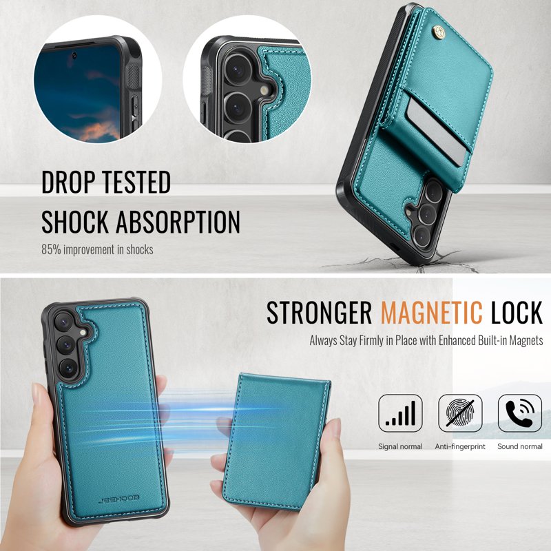 Upptäck JEEHOOD J06 Magnetisk Telefonfodral för Samsung Galaxy S26. Detta läderfodral kombinerar stil och funktionalitet. Med RFID-blockering skyddar det dina kort och ger en lyxig känsla. Det är den perfekta lösningen för den moderna användaren som vill ha både säkerhet och bekvämlighet.