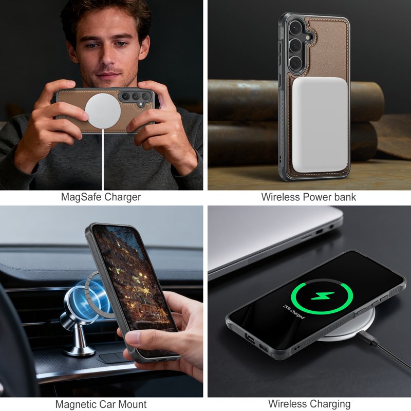 JEEHOOD Mobilskal för Samsung Galaxy S26 Plus Magnetiskt Konstläder - Brun
