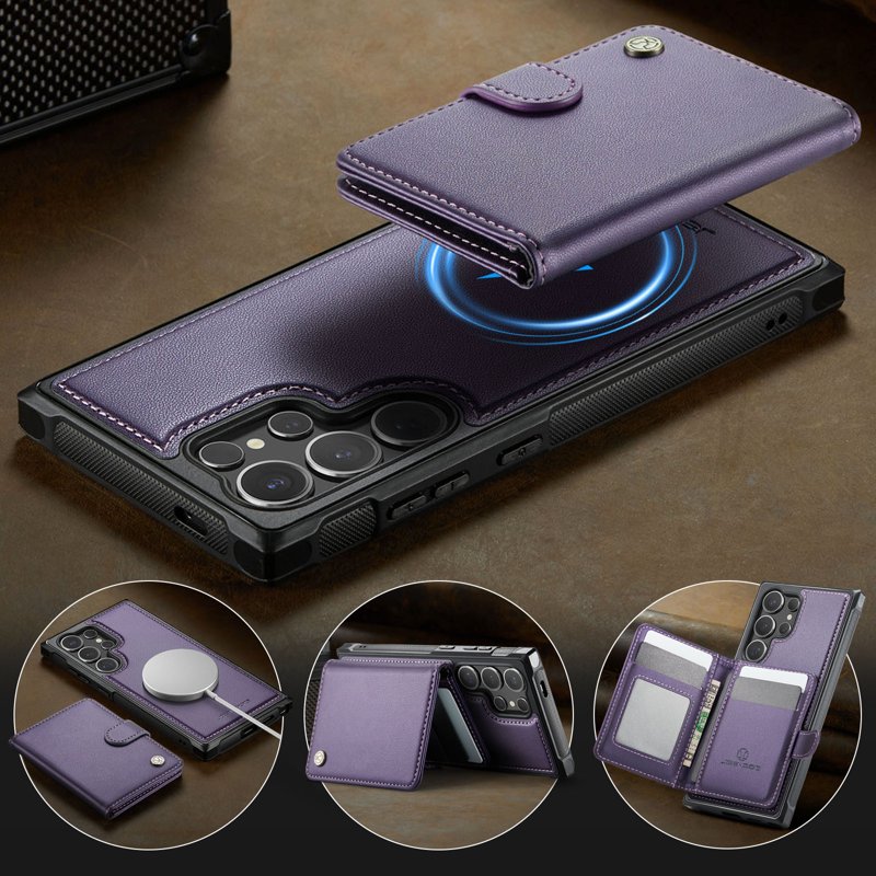 JEEHOOD Mobilskal för Samsung Galaxy S26 Ultra Magnetiskt Konstläder RFID - Lila