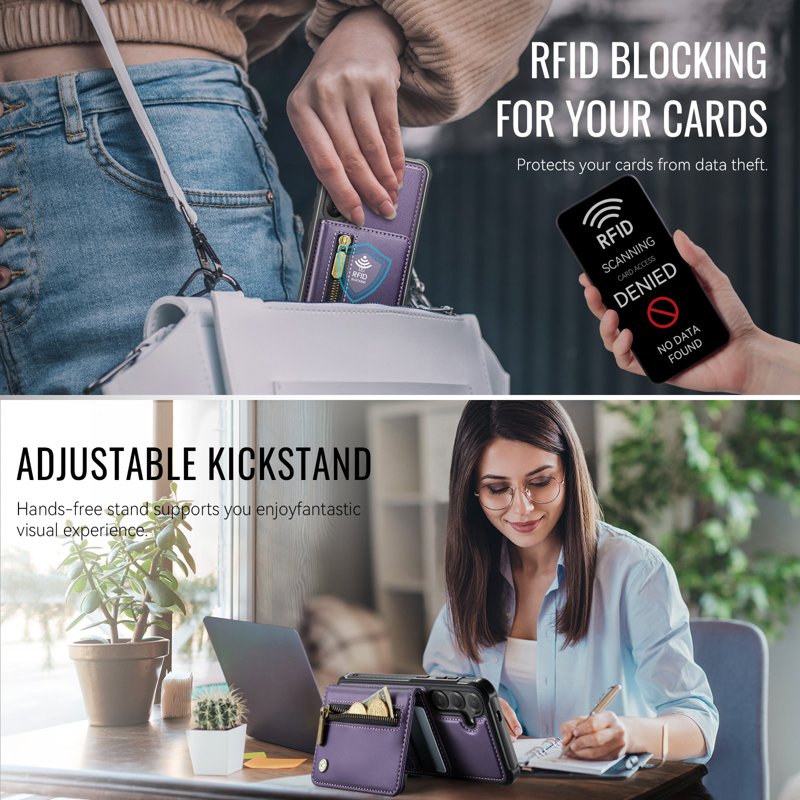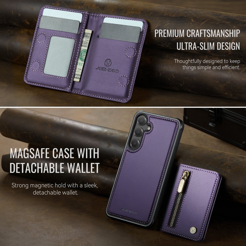 Skydda din Samsung Galaxy S26 Plus med JEEHOOD J12 Magnetic Detachable Zipper Wallet Kickstand Leather Back Cover. Denna praktiska och stiliga lösning kombinerar funktionalitet med säkerhet. Med en avtagbar design och RFID-skydd är detta fodral perfekt för den moderna användaren som vill ha ordning och säkerhet i sin vardag.