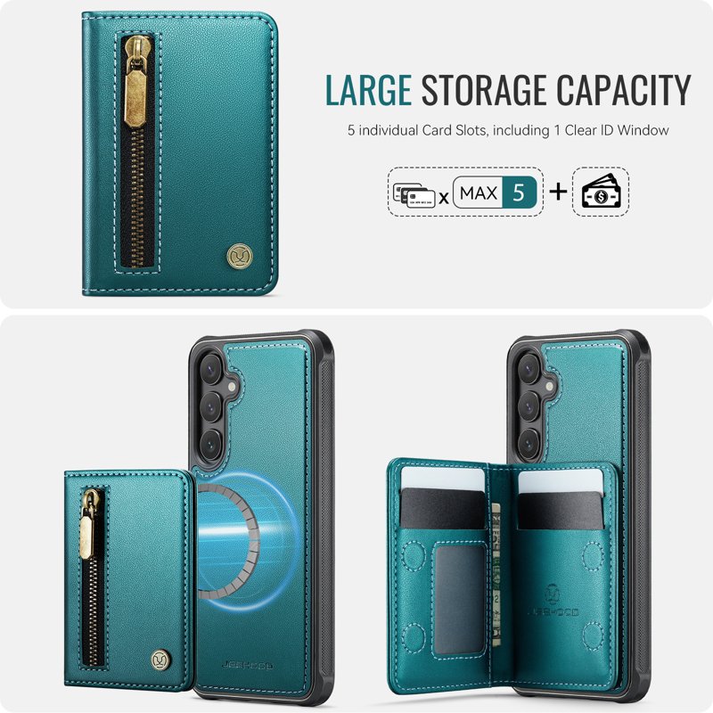 Skydda din Samsung Galaxy S26 Plus med JEEHOOD J12 Magnetic Detachable Zipper Wallet Kickstand Leather Back Cover. Denna smarta lösning kombinerar stil och funktionalitet. Med en avtagbar design och flera förvaringsalternativ är detta fodral perfekt för den moderna användaren.