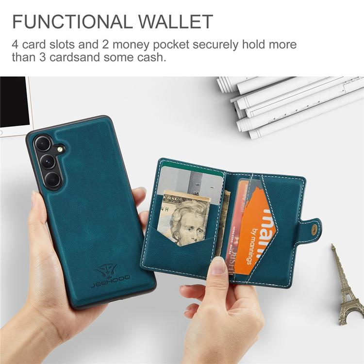 Ge din smartphone både stil och funktionalitet med JEEHOOD J01 – ett 2-i-1 mobilskal i PU-läder och TPU, designat för att passa Samsung Galaxy A14 4G och Samsung Galaxy A14 5G. Den magnetiska, avtagbara konstruktionen kombinerar ett skyddande skal med en praktisk korthållare som enkelt kan fästas eller tas loss efter behov. En perfekt lösning för dig som vill bära med dig det viktigaste – utan extra plånbok.