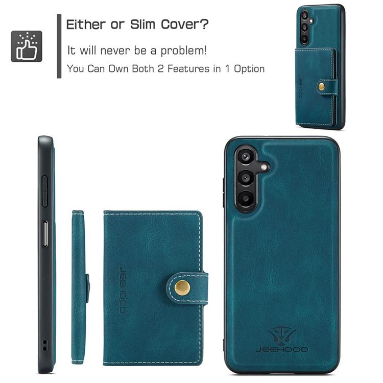 Ge din smartphone både stil och funktionalitet med JEEHOOD J01 – ett 2-i-1 mobilskal i PU-läder och TPU, designat för att passa Samsung Galaxy A15 4G och Samsung Galaxy A15 5G. Den magnetiska, avtagbara konstruktionen kombinerar ett skyddande skal med en praktisk korthållare som enkelt kan fästas eller tas loss efter behov. En perfekt lösning för dig som vill bära med dig det viktigaste – utan extra plånbok.