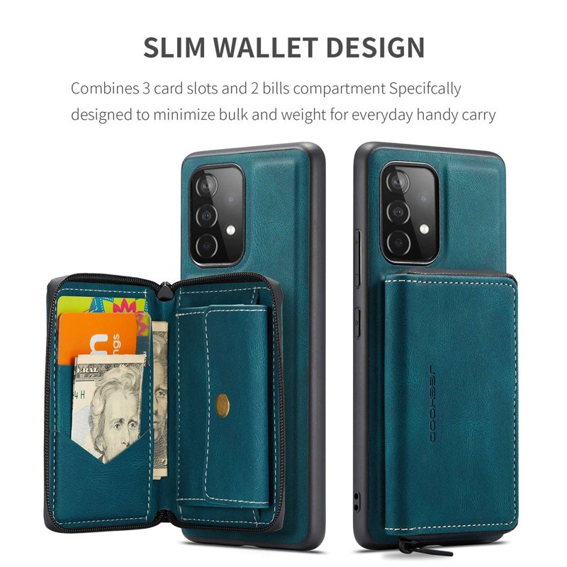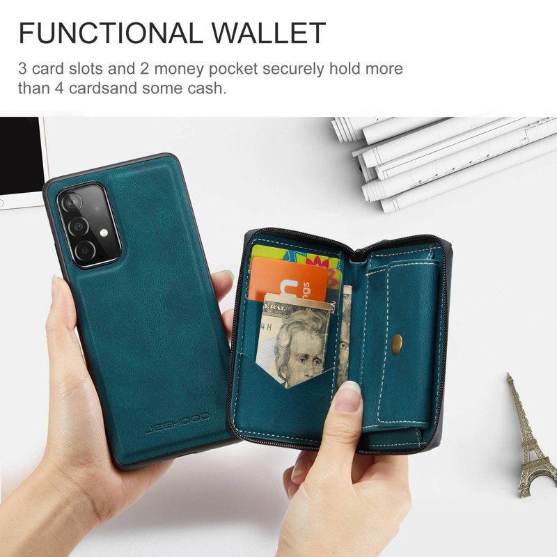 - Säker stängning: Dragkedjan håller dina kort och kontanter säkra.