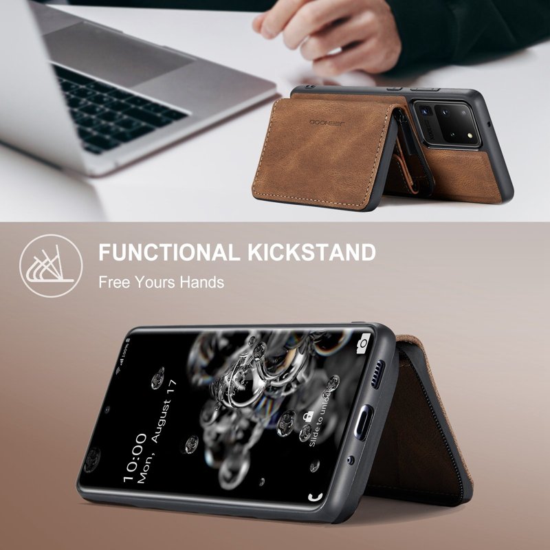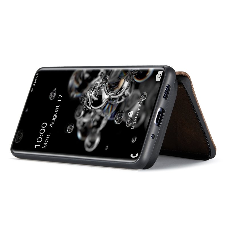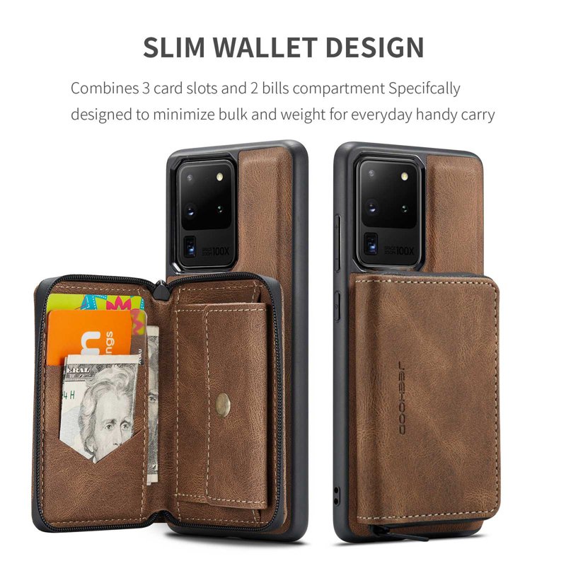 Detta mobilfodral kombinerar stil och funktionalitet. Med en läderplånbok som fästs magnetiskt kan du använda dem separat. Trots sin kompakta design erbjuder plånboken gott om plats för kort och kontanter. Fodralet är både chic och hållbart, och påverkar inte trådlös laddning.