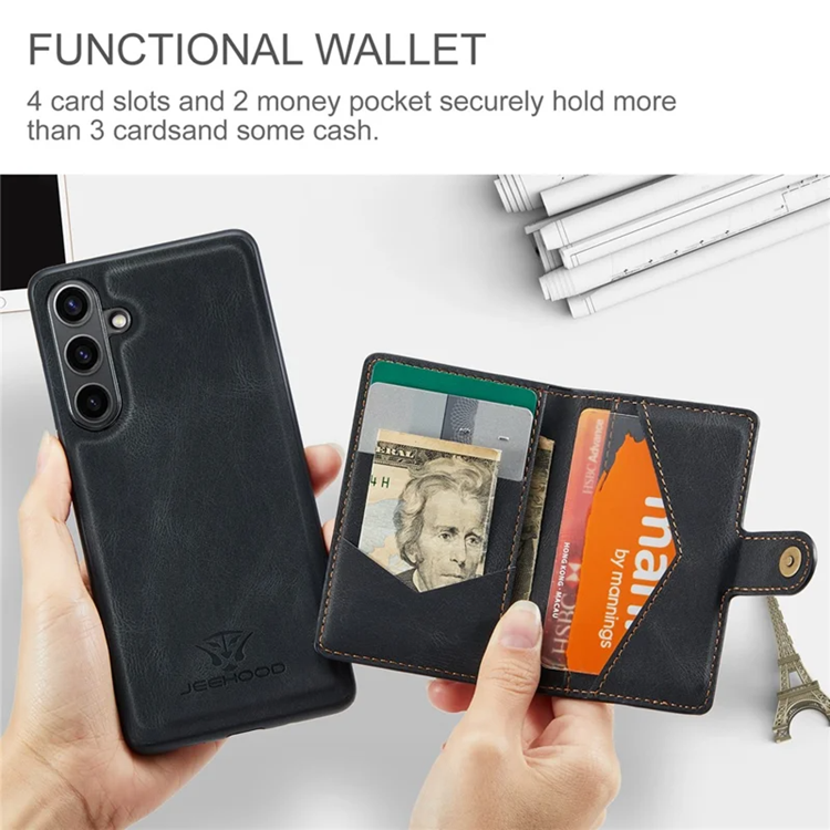 JEEHOOD Samsung Galaxy S24 FE Fodral KonstLäder + Plast - Svart