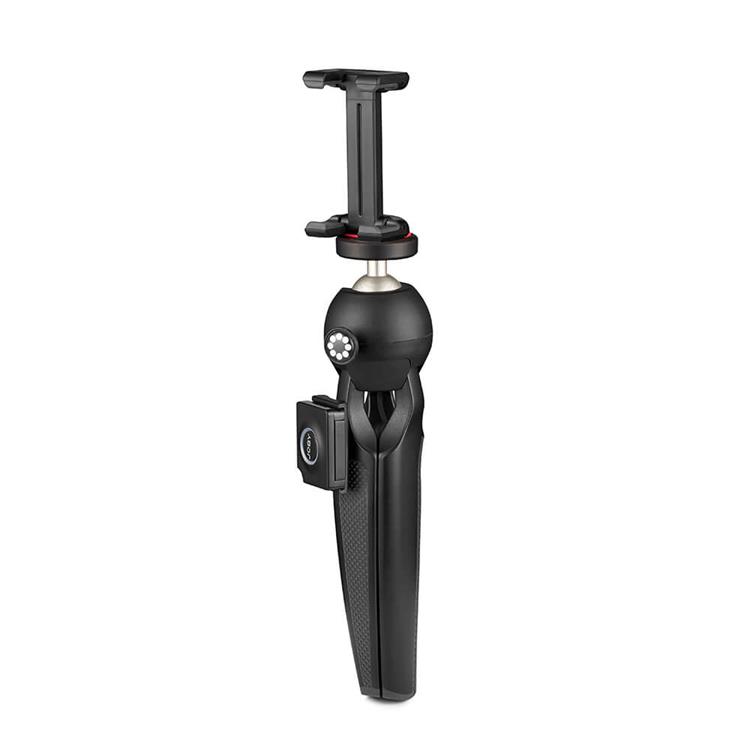Tryckknappsmekanismen gör det möjligt att placera och låsa kulhuvudet i en snabb, intuitiv rörelse och flytta den i stående position för fantastiska vertikala videor och bilder. Dessutom låter Impulse-certifierad Bluetooth®-fjärrkontrollen för iPhone- och Android-smartphones, dig ta ultimata selfies, inkludera dig själv i gruppfoton och fånga kreativa vinklar.