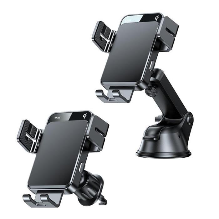 Joyroom Bilhållare Instrumentbräda Och Luftventil Qi Trådlös Laddare 15W - Svart