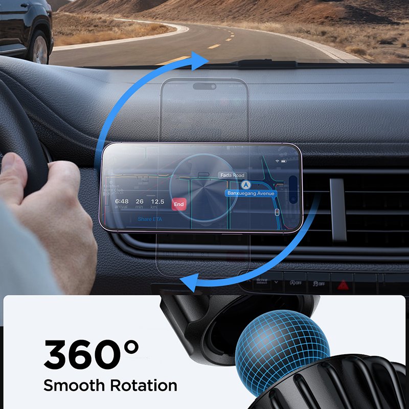 • Stark magnet: Inbyggda 22 rubidiummagneter ger starkt grepp och förhindrar att telefonen faller av.