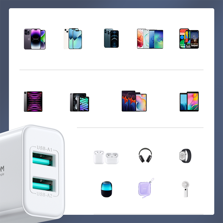 • Snabbladdning av två enheter samtidigt: Tack vare två USB-A-portar med en total effekt på 10,5W (5V=2,1A) låter JR-TCN04 dig effektivt ladda två enheter samtidigt, vilket sparar tid.