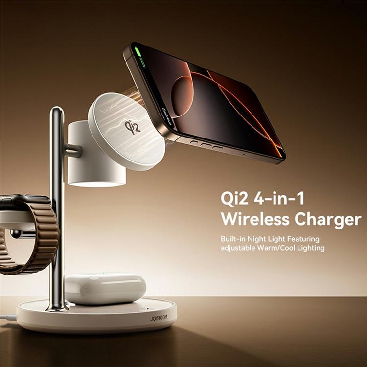 JOYROOM Qi2 4in1 Magnetisk Trådlös Laddare iPhone, Apple Watch, Airpods med Nattlampa JR-W23 - Vit