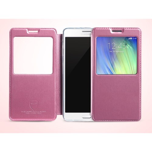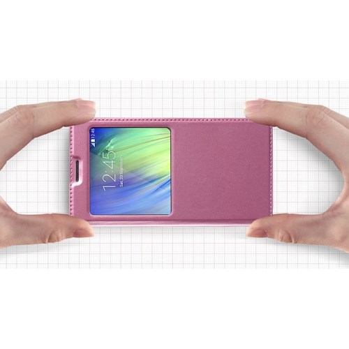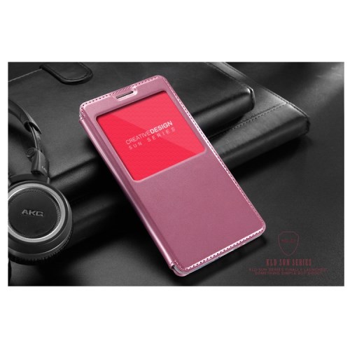KLD Sun Series fönsterfodral till Samsung Galaxy A7. Det här fodralet är designat i skinande PU-läder som ger det ett elegant utseende. Din telefon fästes enkelt i ett inre tåligt TPU-skal och sitter sedan säkert i fodralet, skyddat från repor, smuts och stötar. Fodralet hålls stängt med magneter. Genom det bekväma fönstret kan du se inkommande samtal, meddelanden tid etc utan att behöva öppna fodralet.