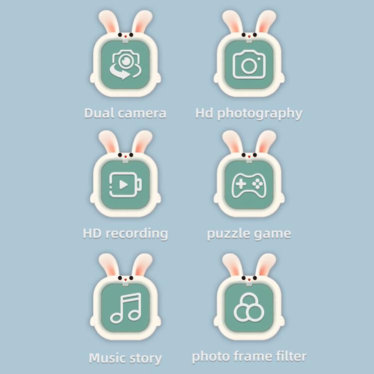 Tecknad Kanin Barn Digitalkamera 2.0-Tums IPS-Skärm HD Dubbelt Objektiv Videoinspelare T6S - Blå