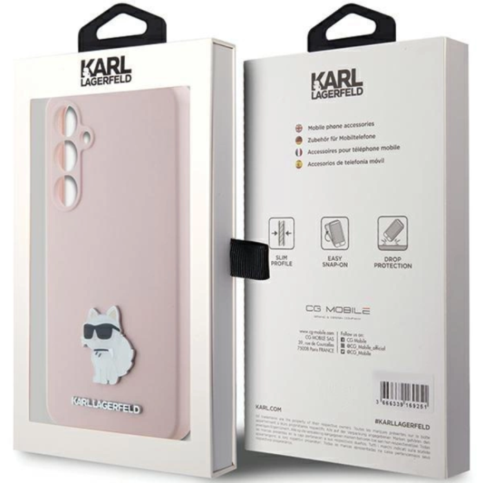 Den här kollektionen av skyddsfodral är dekorerad med en stor tredimensionell metallplatta med bilden av den berömda Karl Lagerfelds älskade katt - vackra Choupette. Hela följs upp av en metallplatta med Karl Lagerfelds logotyp, vilket bekräftar den utmärkta kvaliteten och äktheten hos produkterna för vilka detta berömda varumärke är ansvarigt.