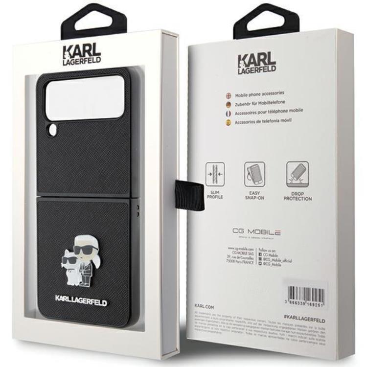 Karl Lagerfeld Galaxy Z Flip 4 Mobilskal Saffiano Karl & Choupette Pins - Svart