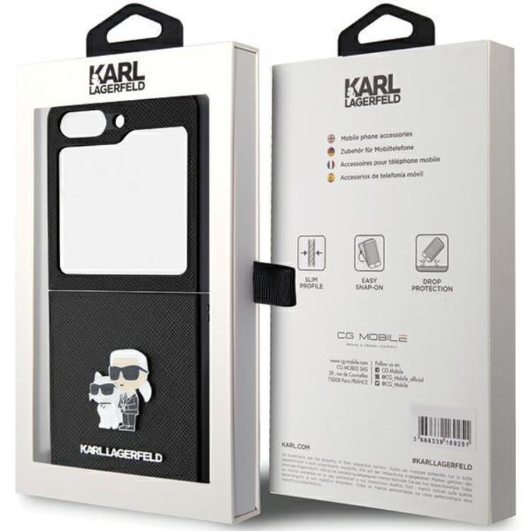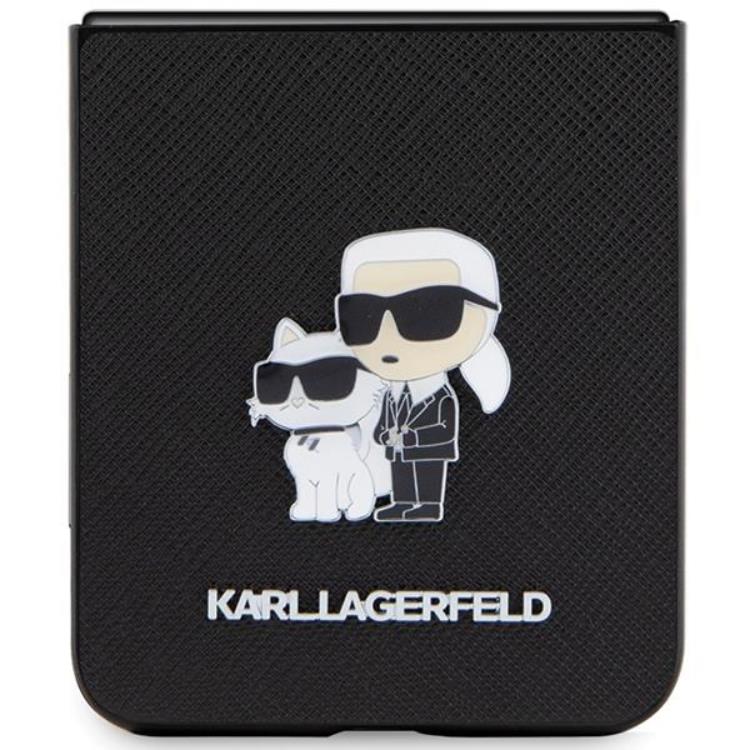 KARL LAGERFELD Galaxy Z Flip 5 Mobilskal Saffiano Karl & Choupette Pin - Svart