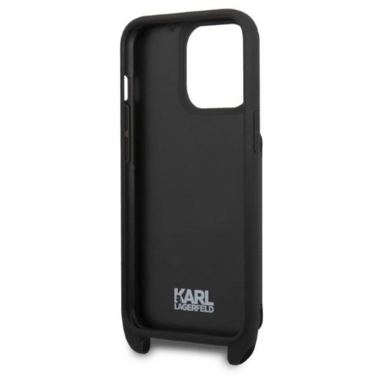 Karl Lagerfeld iPhone 13 Pro Max Halsbandsskal Saffiano Karl & Choupette Embossed - Svart