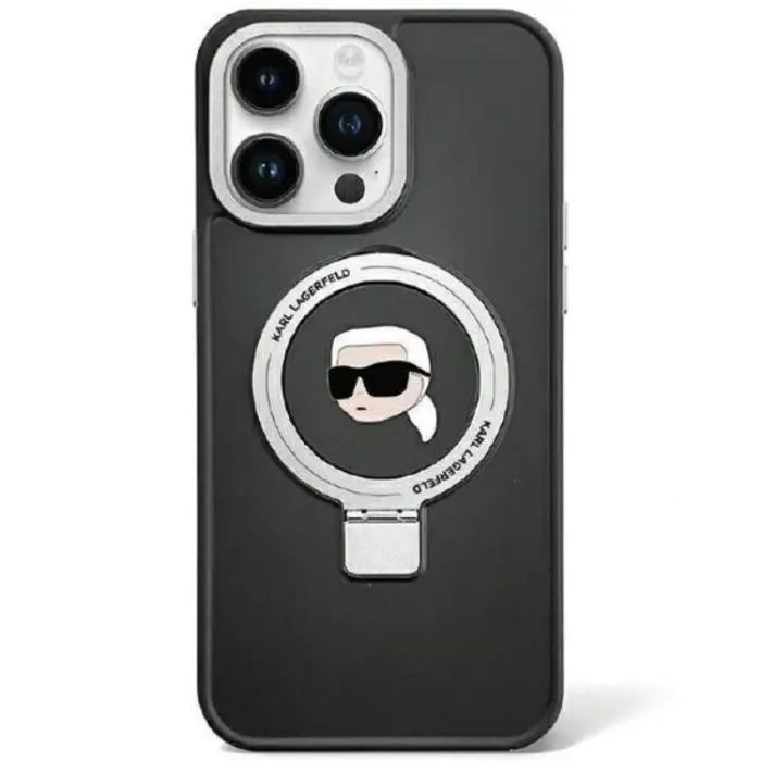 KARL LAGERFELD iPhone 15 Mobilskal MagSafe Ring Stand Karl Head - Svart