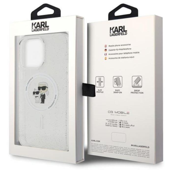KARL LAGERFELD iPhone 15 Pro Max Mobilskal Magsafe Karl & Choupette Glitter - Transparent