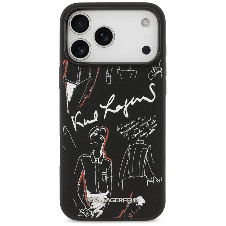 Karl Lagerfeld iPhone 17 Pro Max Mobilskal MagSafe Grained Pattern & Logo - Svart