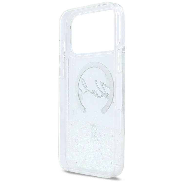 Karl Lagerfeld iPhone 17 Pro Mobilskal Magsafe Liquid Glitter Karl Script Logo - Transparent