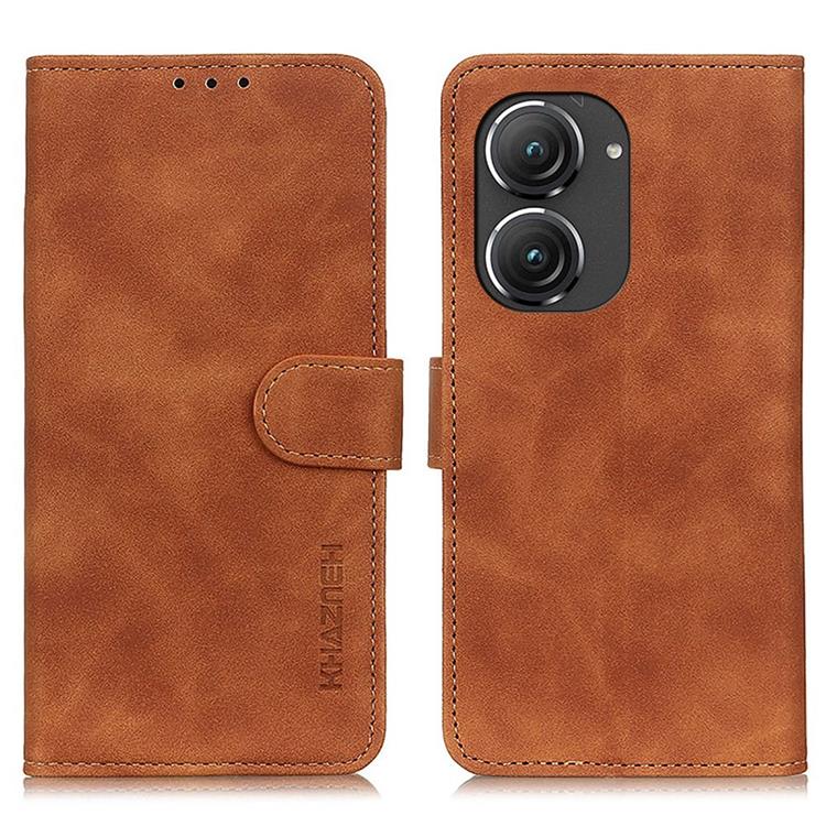 KHAZNEH Asus Zenfone 9 Plånboksfodral Retro Texture Flip Anti-fall PU Läder - Brun