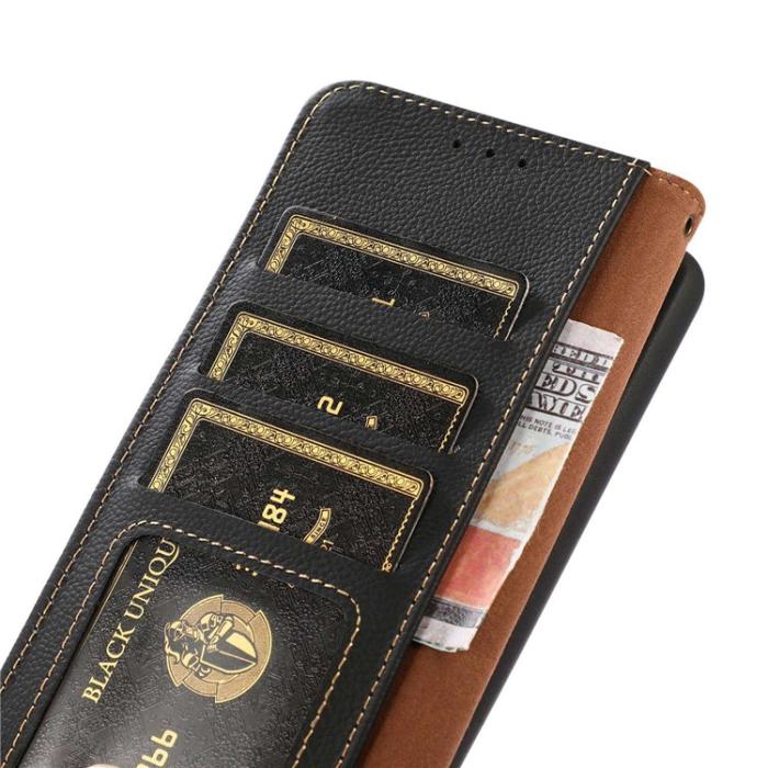 KHAZNEH Galaxy S23 Plus Plånboksfodral Äkta Läder RFID Blockerande Vikbart Ställ - Svart