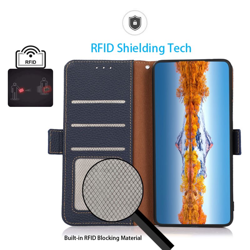 • Elegant litchi-textur i äkta nötköttsläder - Ger en stilren och sofistikerad look till din telefon.