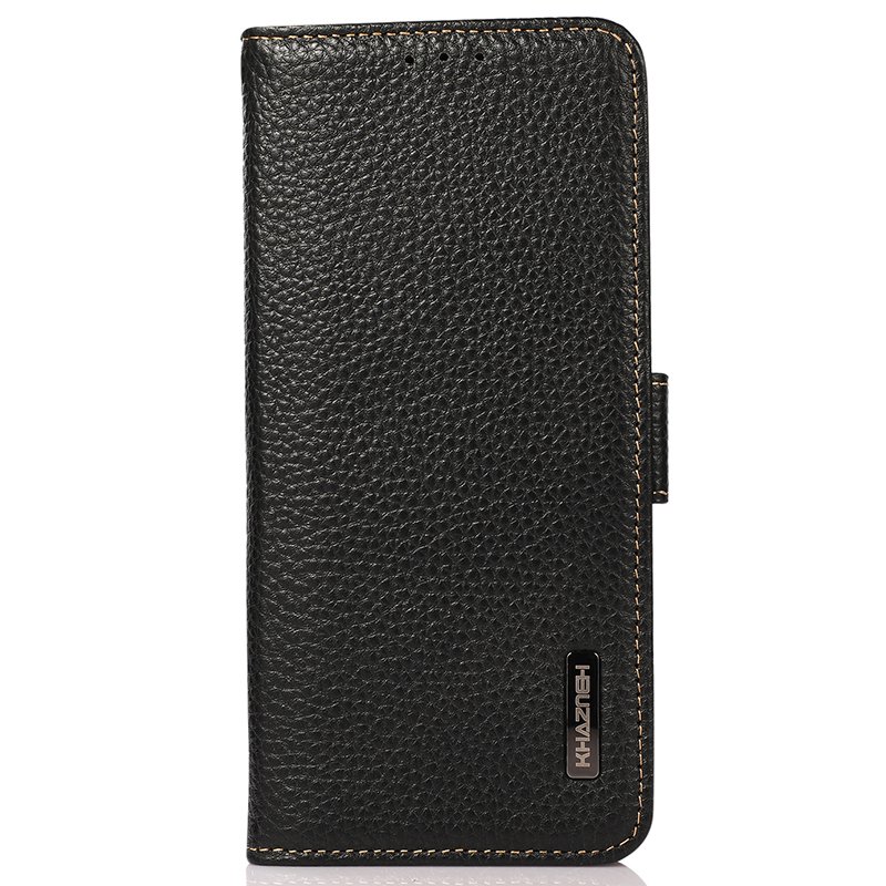 Khazneh Samsung Galaxy S23 FE fodral i äkta läder kombinerar stil och funktionalitet. Tillverkat av högkvalitativt läder ger det ett elegant utseende. Fodralet skyddar din telefon samtidigt som det erbjuder praktiska funktioner som kortfack och en stödfunktion för handsfree-användning.