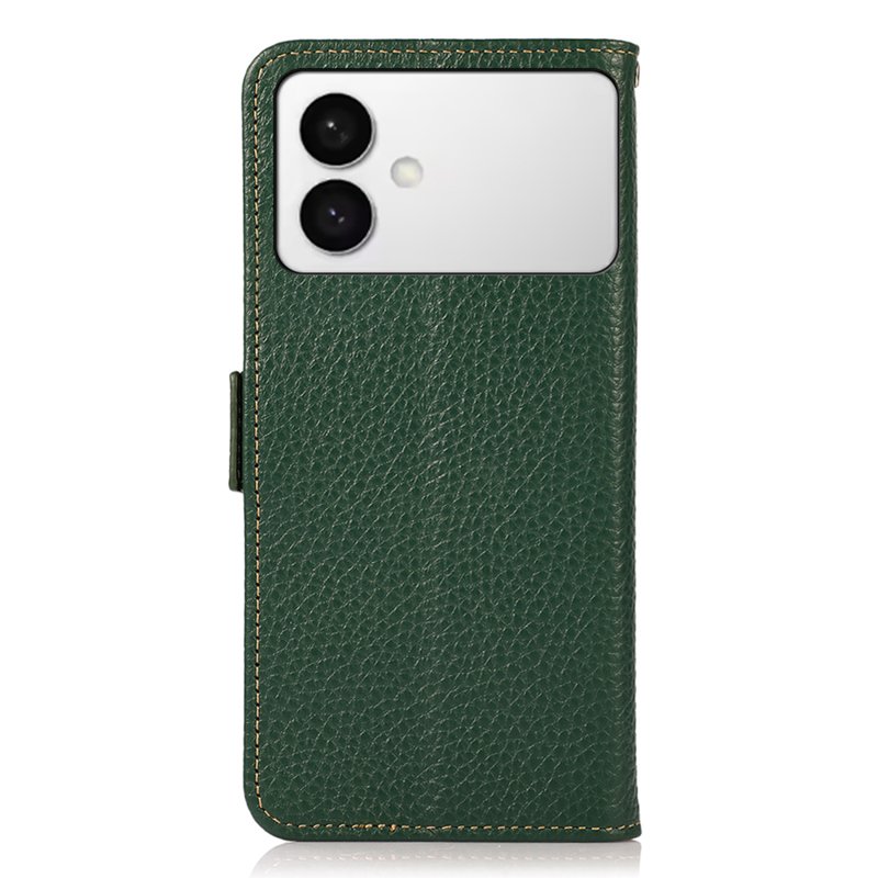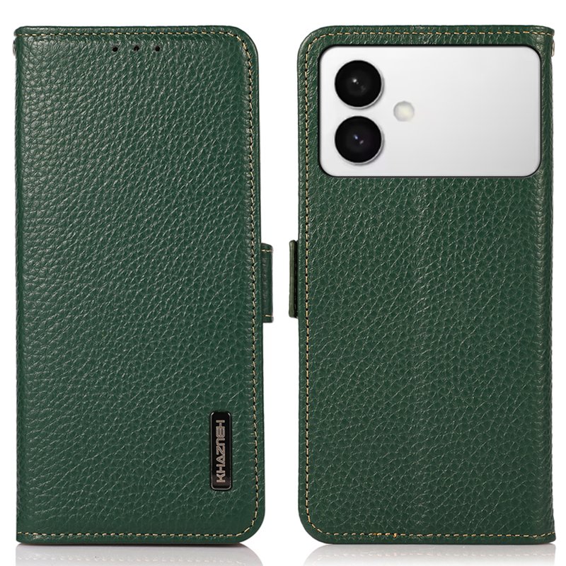 KHAZNEH för Samsung Galaxy S26 Edge är ett exklusivt fodral i äkta nötläder. Det erbjuder både stil och funktionalitet. Med RFID-blockering skyddar det din personliga information. Fodralet är lätt och smidigt, vilket gör det enkelt att hantera. Dessutom har det praktiska kortfack och kan omvandlas till ett stöd för handsfree-användning.