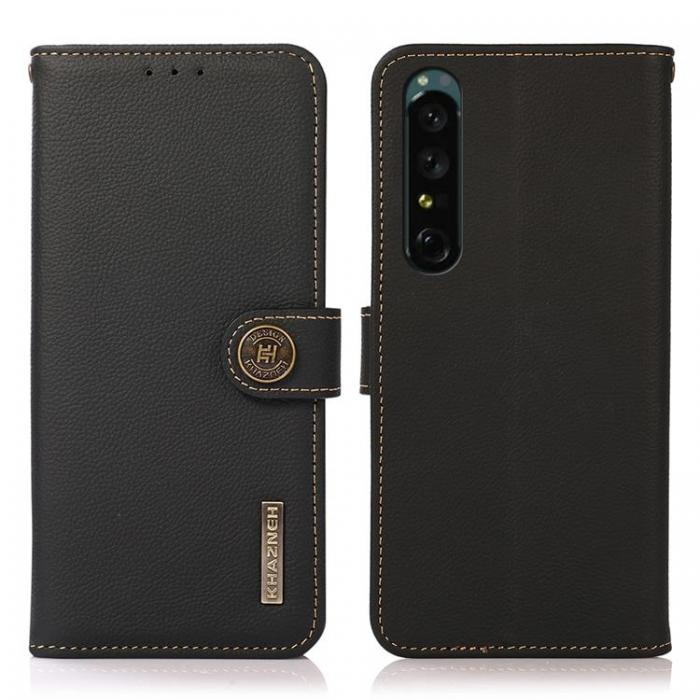 KHAZNEH Sony Xperia 1 IV Plånboksfodral Äkta Läder RFID - Svart