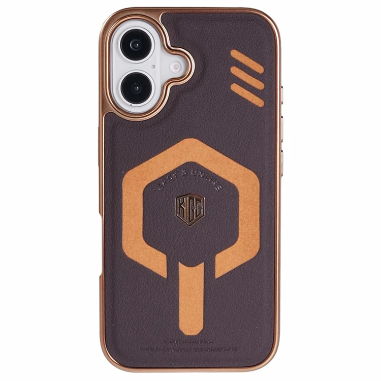 KIGC iPhone 16 Mobilskal Magsafe Läder + PC + TPU - Titanguld