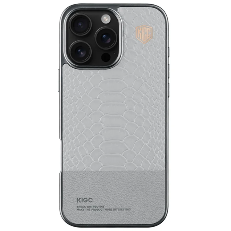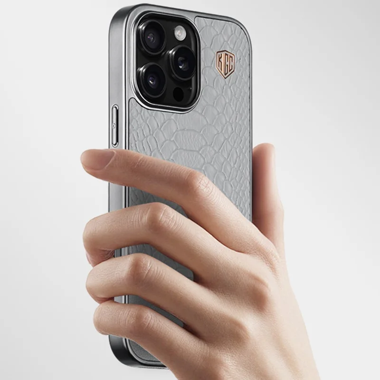 KIGC iPhone 16 Pro Mobilskal Crocodile Texture Läder + PC + TPU Electroplating - Grå