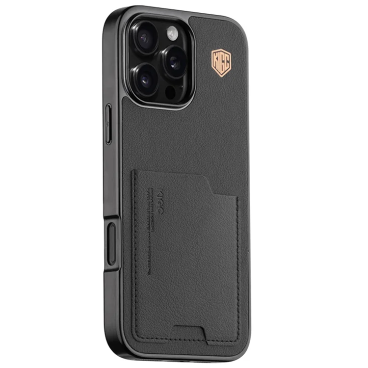 KIGC iPhone 16 Pro Mobilskal Korthållare Electroplating Läder + PC + TPU - Svart