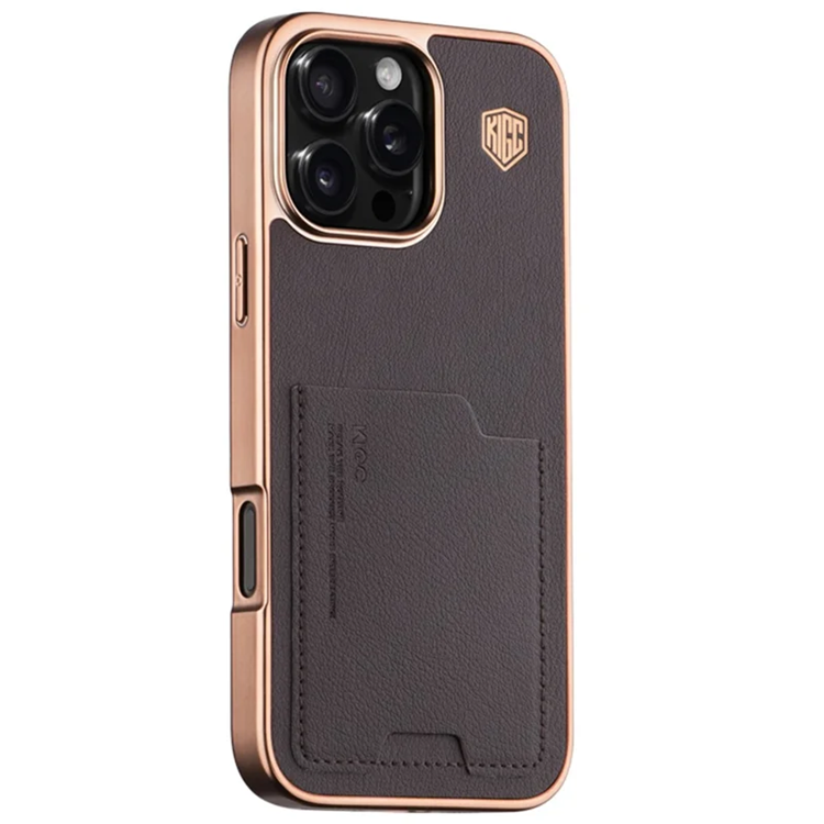 KIGC iPhone 16 Pro Mobilskal Korthållare Electroplating Läder + PC + TPU - Titanguld