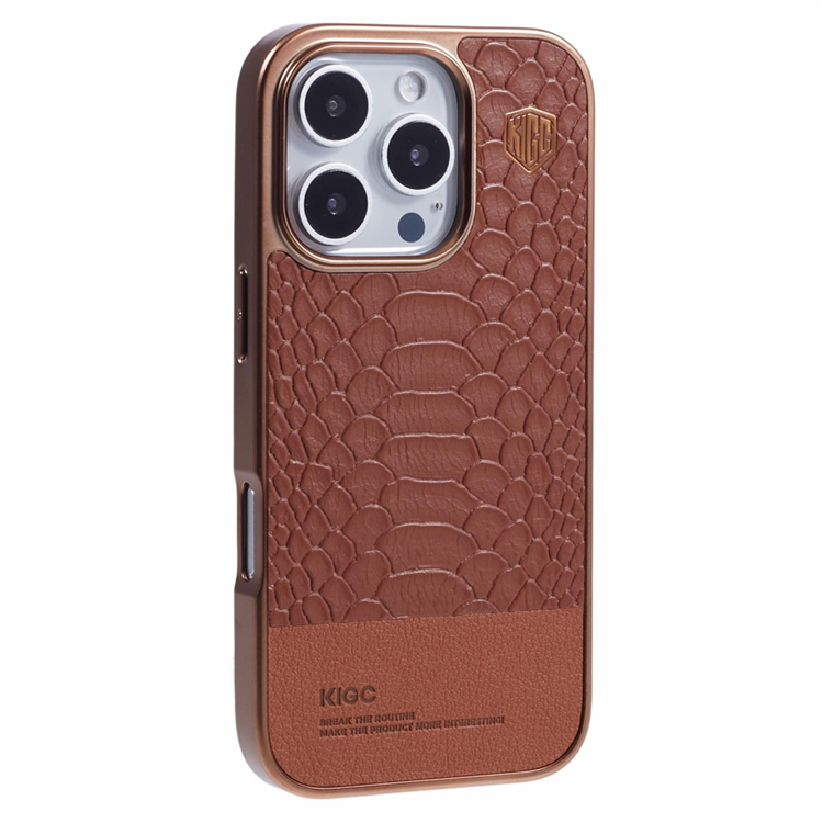 KIGC iPhone 16 Pro Mobilskal MagSafe Crocodile Electroplating - Titanium Guld