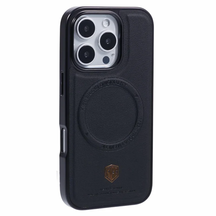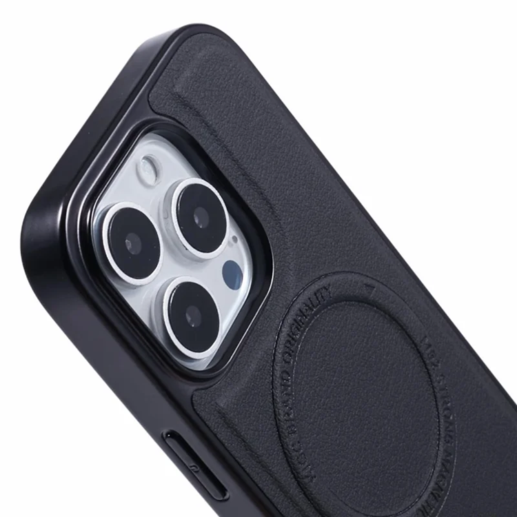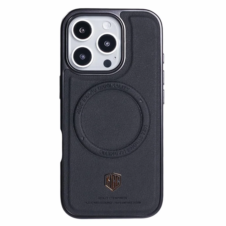 KIGC iPhone 16 Pro Mobilskal Magsafe Electroplating PC + TPU +PU - Svart
