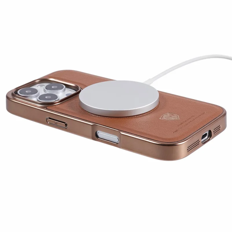KIGC iPhone 16 Pro Mobilskal Magsafe Electroplating PC + TPU +PU - Titanguld