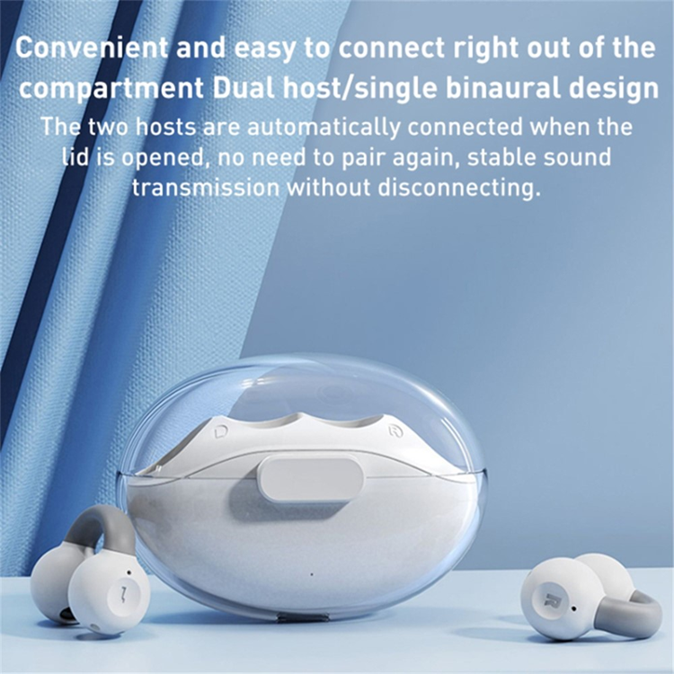 Upplev kristallklart ljud och total frihet med dessa trådlösa Bluetooth 5.3-hörlurar med öronclips – designade för både komfort och prestanda. Med sin lätta, öppna design sitter de bekvämt utan att täppa till hörselgången, vilket gör dem perfekta för långvarig användning under träning, pendling eller arbete. Du får en fräsch, luftig känsla utan tryck mot öronen, samtidigt som du alltid är medveten om din omgivning.