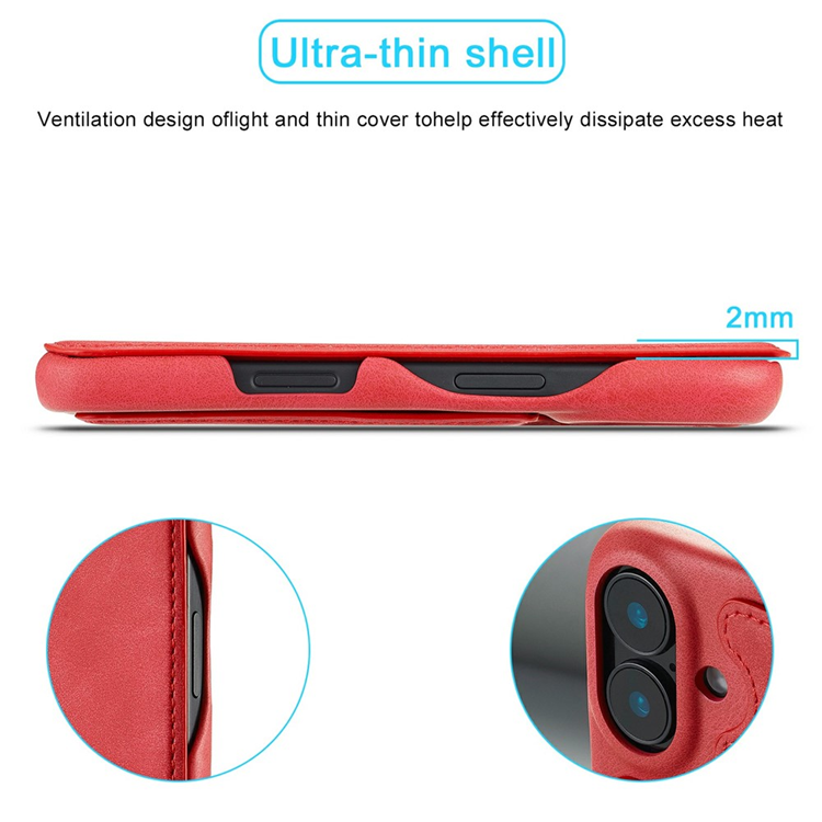 LC.IMEEKE iPhone 17 Fodral Card Holder Äkta läder - Röd