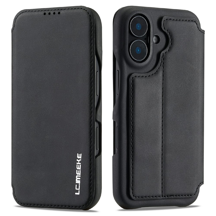 LC.IMEEKE iPhone 17 Mobilfodral Korthållare Läder Stativ - Svart