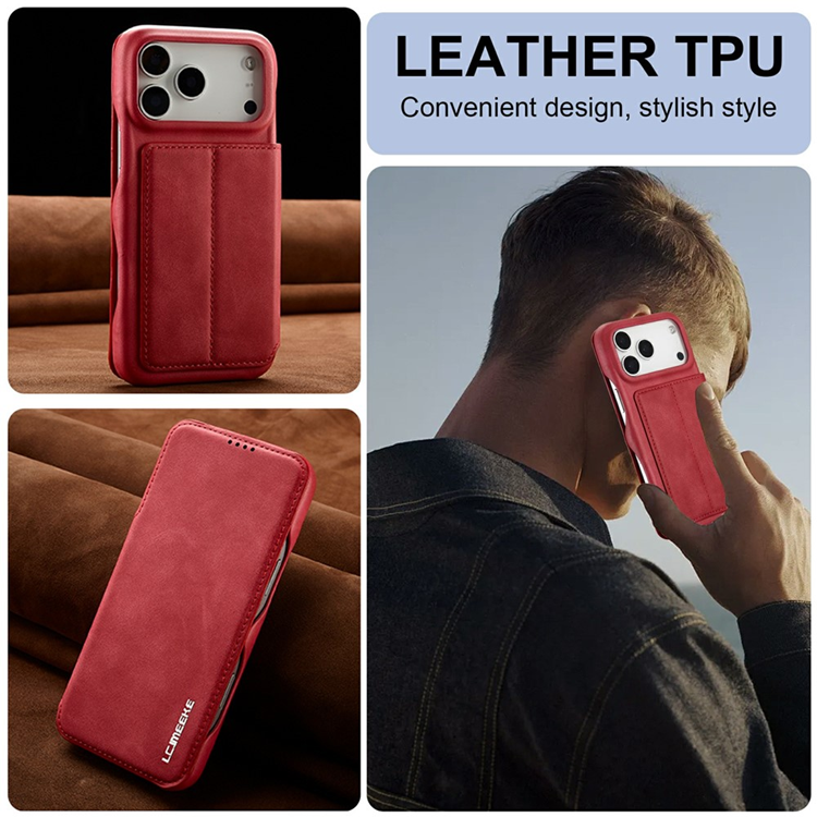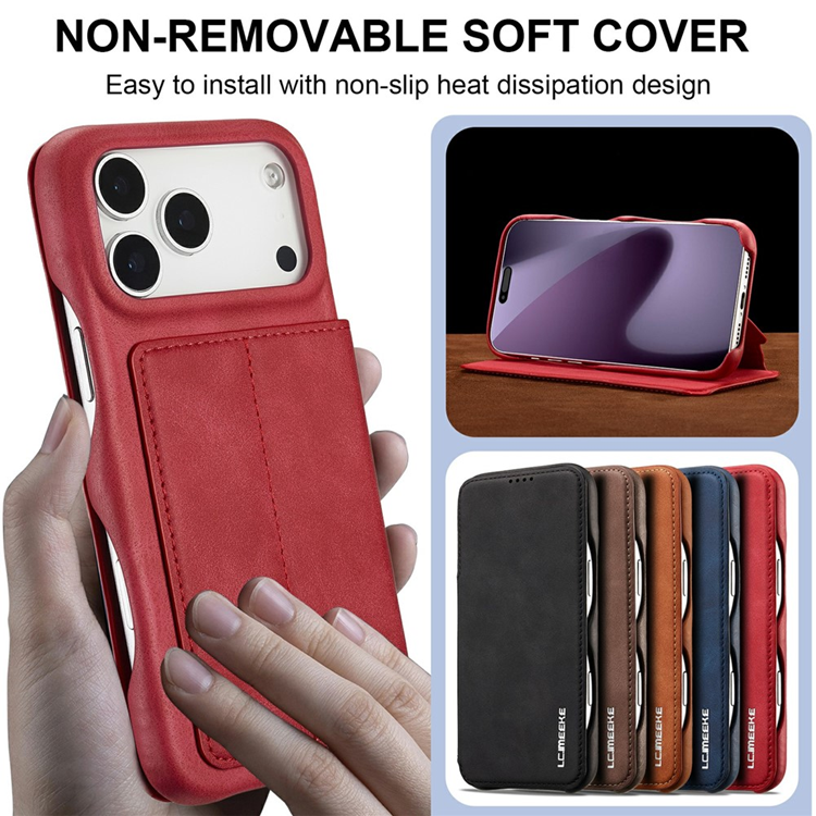 LC.IMEEKE iPhone 17 Pro Mobilfodral Korthållare Läder Stativ - Röd