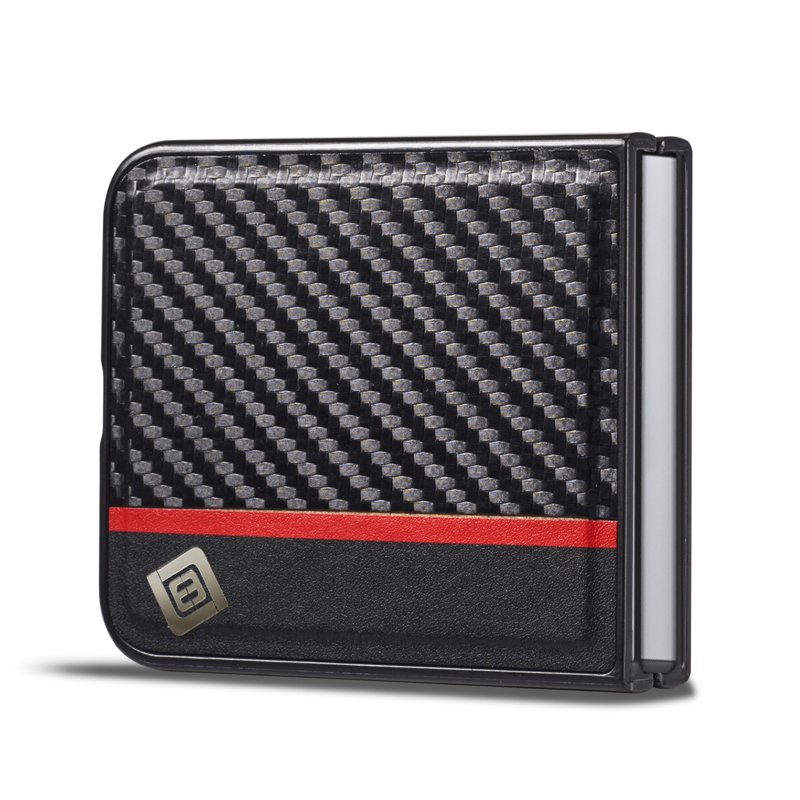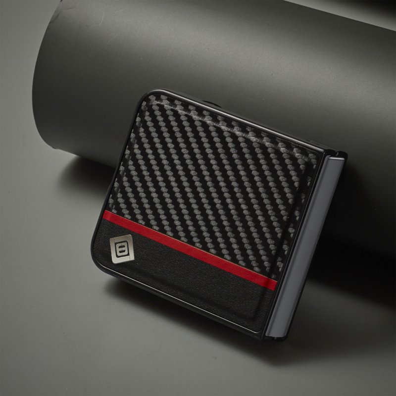 • Stilren yta med kolfibertextur som ger ett modernt utseende