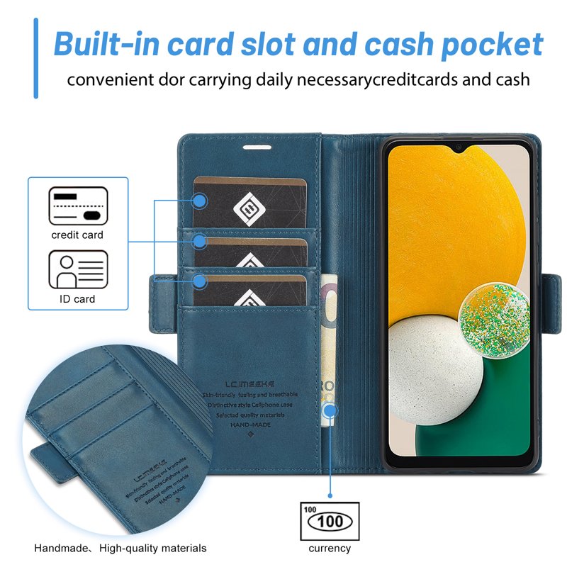 Upptäck LC.IMEEKE fodralet för Samsung Galaxy A53 5G. Tillverkat av högkvalitativt PU-läder och TPU, erbjuder detta fodral både stil och hållbarhet. Med smarta funktioner som kortfack och en praktisk ställfunktion, är det den perfekta lösningen för att skydda din telefon och organisera dina tillhörigheter.