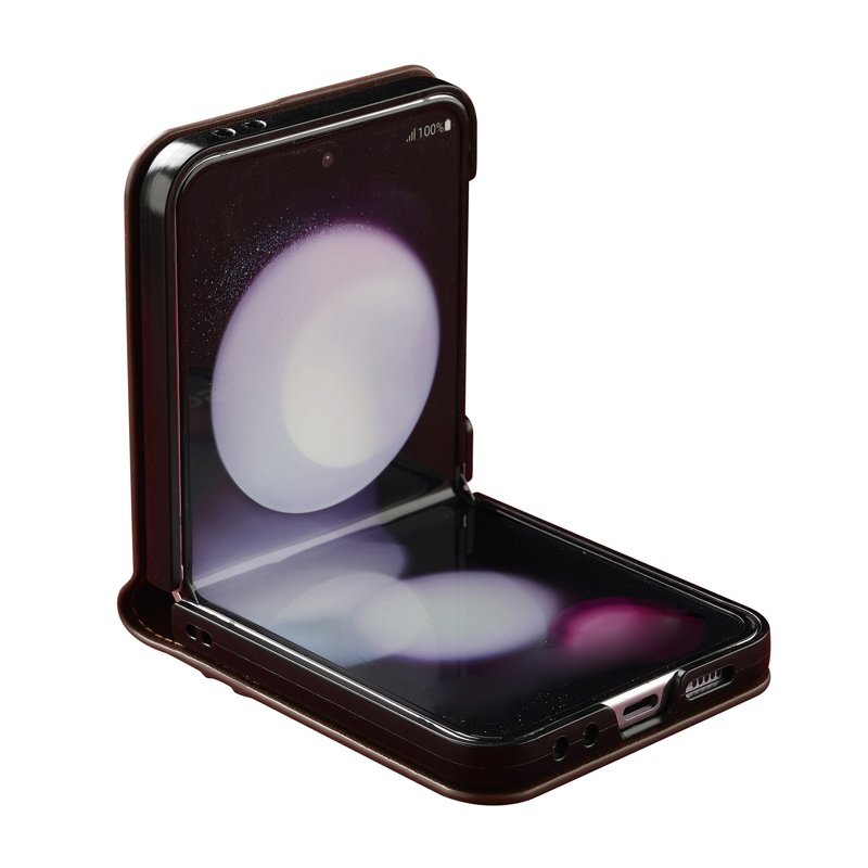 LC.IMEEKE Fodral för Samsung Galaxy Z Flip5 i Äkta Läder - Brun